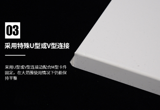 7、墻板連接:采用特殊U形或V形連接邊配合M形卡件固定;在大范圍使用情況下仍能保持墻面良好的平整度。