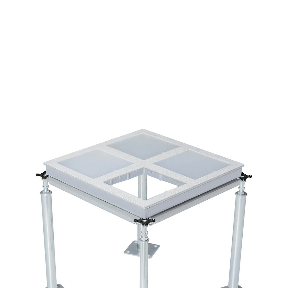 “科定”牌高壓鑄鋁合金窗口地板,表面通過(guò)銑床加工出四個(gè)窗形方孔,并覆蓋亞克力透明有機(jī)板,形成四個(gè)可視窗口。