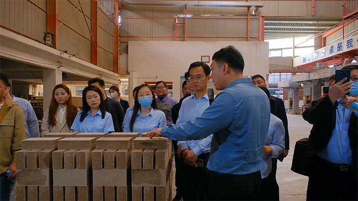 秦經(jīng)理在講解耐火磚的生產(chǎn)工藝
