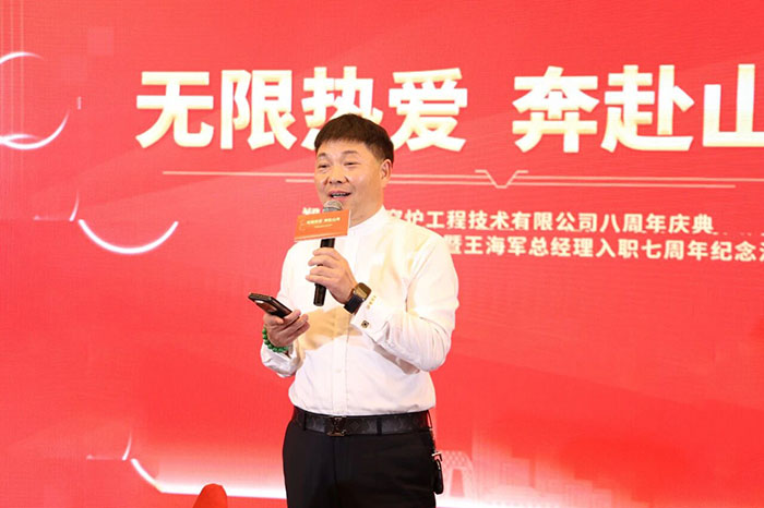 集團董事長楚科奇首先發(fā)表了致辭。他回顧了榮盛窯爐工程八年來從創(chuàng)業(yè)維艱到行業(yè)頭部的奮斗歷程。他指出,每一份成績的取得,都凝聚著全體員工的智慧、汗水與“無限熱愛”。楚總向入職七周年的王海軍總經(jīng)理表達敬意與感謝,高度評價,擁有 領(lǐng)導(dǎo)力和市場洞察力。他特別強調(diào),在王總的帶領(lǐng)下,工程公司今年業(yè)績超越預(yù)期,創(chuàng)下歷史新高,為公司樹立了新的發(fā)展標(biāo)桿。同時,楚總也對朱廣州帶領(lǐng)的工程項目部、白建偉負責(zé)的生產(chǎn)部以及集團管理層表達了充分肯定,感謝各團隊為公司發(fā)展作出的重要貢獻。后,楚總號召全體榮盛人,以八周年為新的起跑線,憑借對事業(yè)的無限熱愛與堅定信念,共同驅(qū)動榮盛巨輪,在時代的浪潮中破浪前行,開辟更加壯麗的征途。