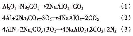 Tripathy等在回收鋁灰中的氧化鋁時,通過蘇打-焙燒法對鋁灰進行預處理,隨后用堿性溶液浸出,反應原理如(1)(2)(3)式: